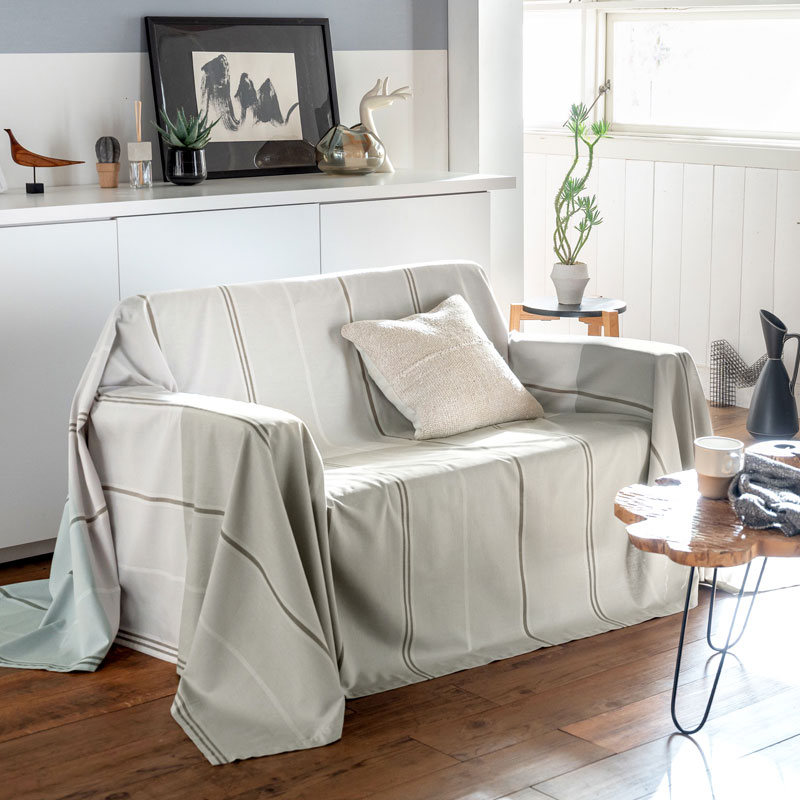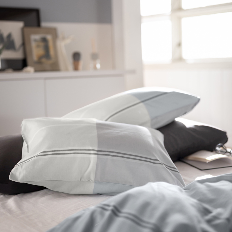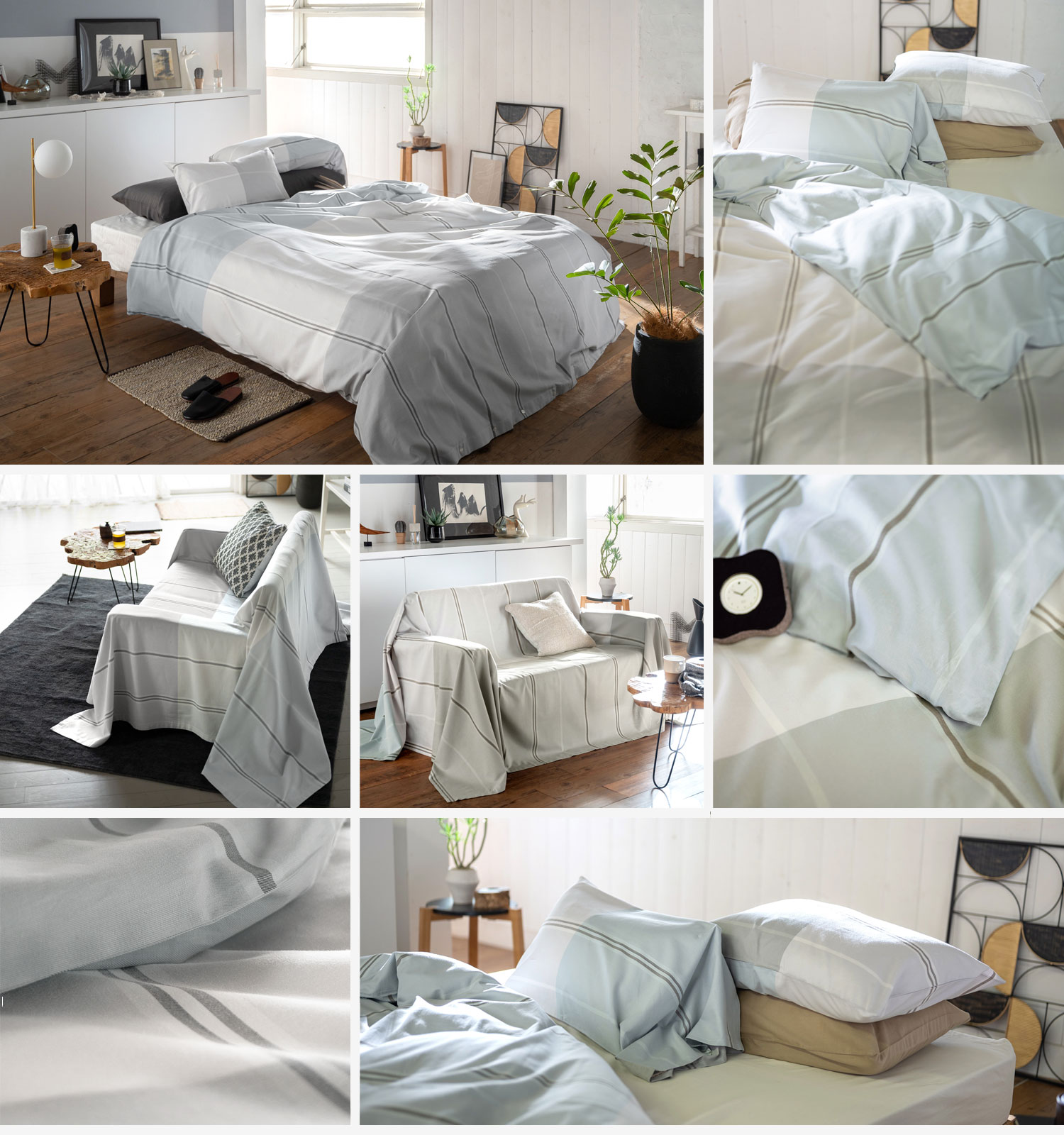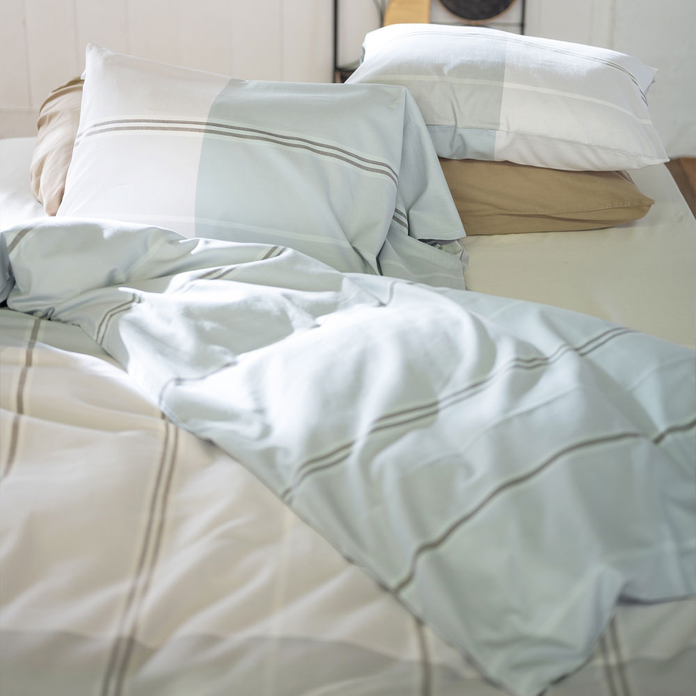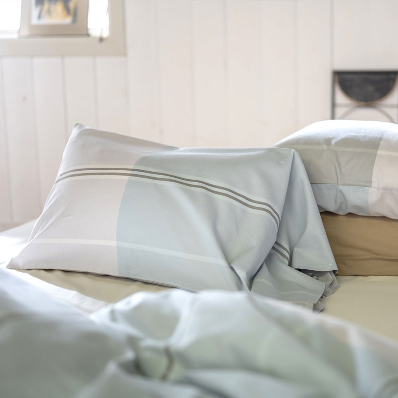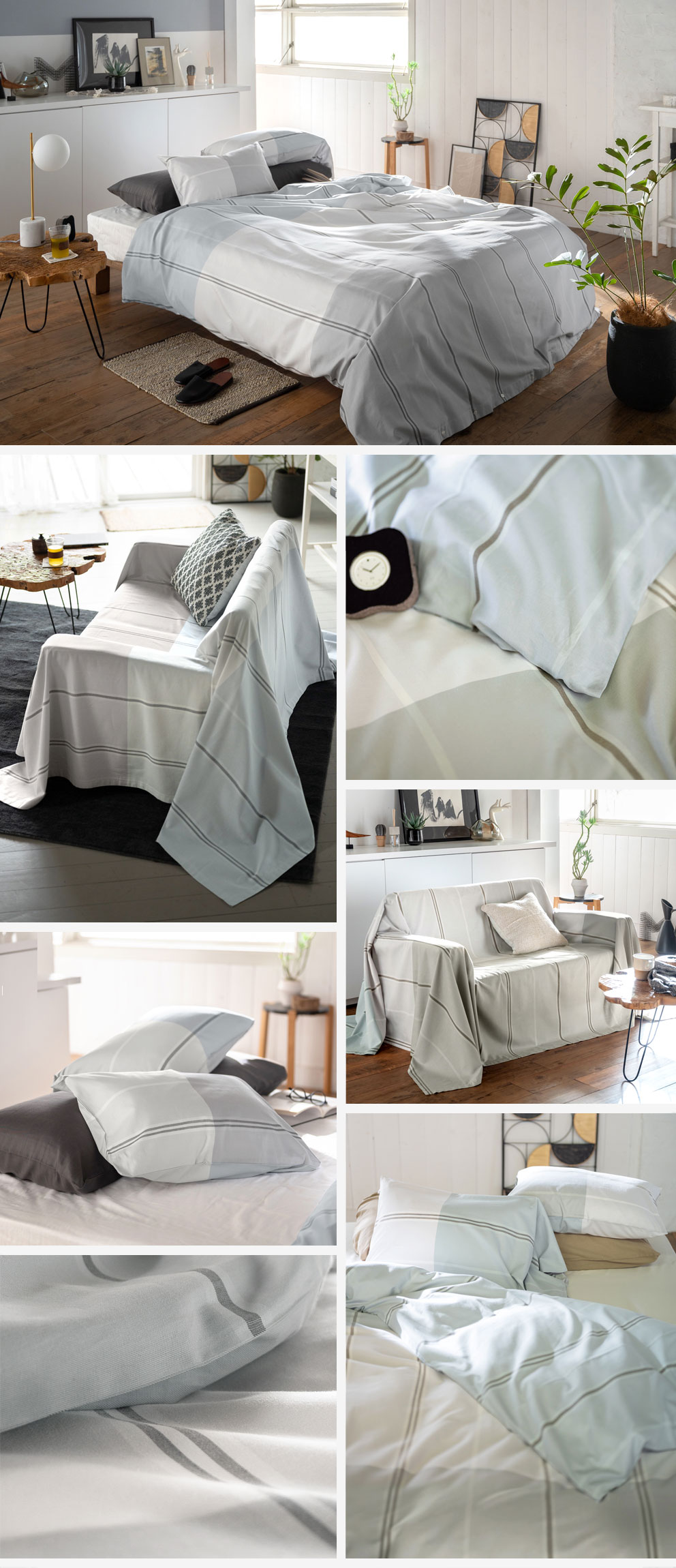 そのイメージを先染めの色糸で織り上げたツイル組織のブロックボーダー。